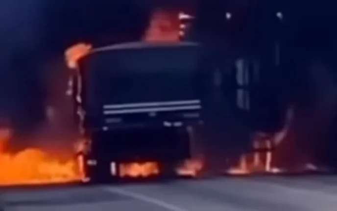 Duas carretas pegaram fogo após colidirem na tarde deste sábado, 1º de novembro, no km 736 da BR-116, em Vitória da Conquista, no Sudoeste da Bahia