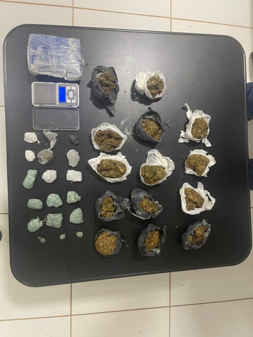 A mulher foi apresentada no Disep (Distrito Integrado de Segurança Pública), juntamente com um quilo de drogas apreendidas: 354g de maconha, meio tablete de cocaína com 450g e 16 porções, incluindo dois papelotes, da mesma droga pesando 56g, além de uma balança.