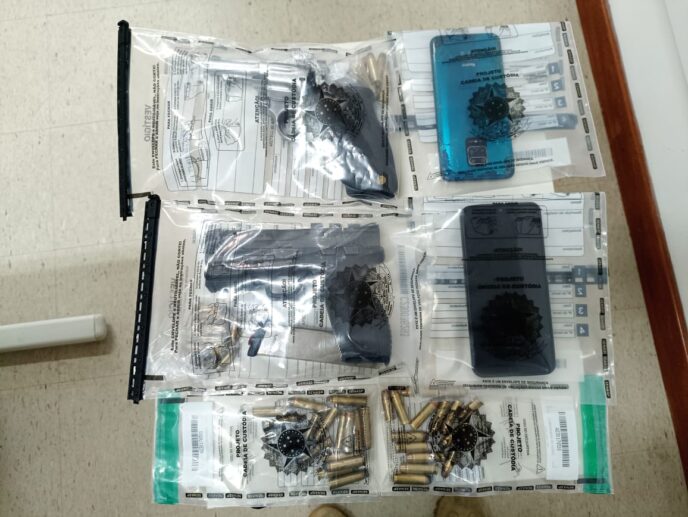 Dois homens foram presos, e armas, munições e celulares foram apreendidos