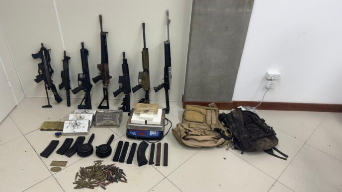Uma investigação da Polícia Civil da Bahia resultou na apreensão de seis fuzis, uma submetralhadora e mais de mil munições em um ‘bunker’ no Caji, em Lauro de Freitas, na RMS (Região Metropolitana) a 18 km de Salvador, utilizado por traficantes para guardar armas e drogas. A ação ocorreu entre a noite de quinta-feira, 11/7, e a madrugada desta sexta-feira, 12, e foi realizada por equipes do Depom (Departamento de Polícia Metropolitana) e da v(Coordenação de Operações e Recursos Especiais).