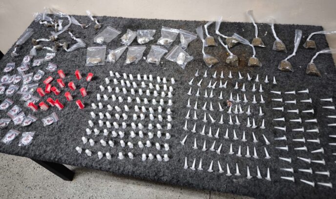 No local, os suspeitos abandonaram uma sacola contendo 36 porções de haxixe, 236 porções de cocaína e 60 porções de maconha.