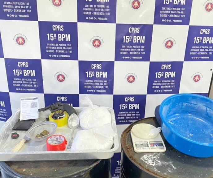 Dois quilos de cocaína, maconha e carregadores, do tipo caracol, foram apreendidos no sábado, 13/5, por equipes do 15º Batalhão da Polícia Militar em Itabuna, nos bairros de São Pedro e Olidon.