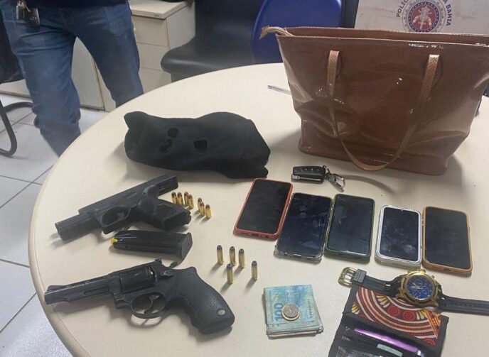 Com eles foram apreendidos uma pistola calibre 9mm, um revólver calibre 38, carregadores, munições e uma balaclava. Segundo o oficial, a ocorrência foi registrada na Central de Flagrantes de Feira de Santana.