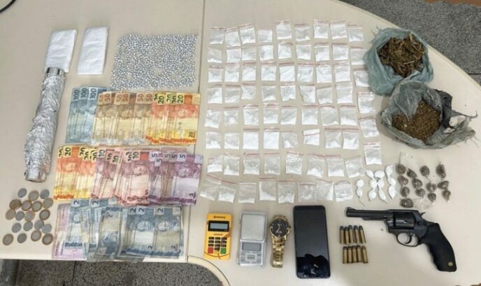 Buscas foram feitas nas proximidades e um outro homem foi flagrado com um revólver calibre 38, 10 munições do mesmo calibre, 81 porções de cocaína, 13 de maconha e 726 de crack.
